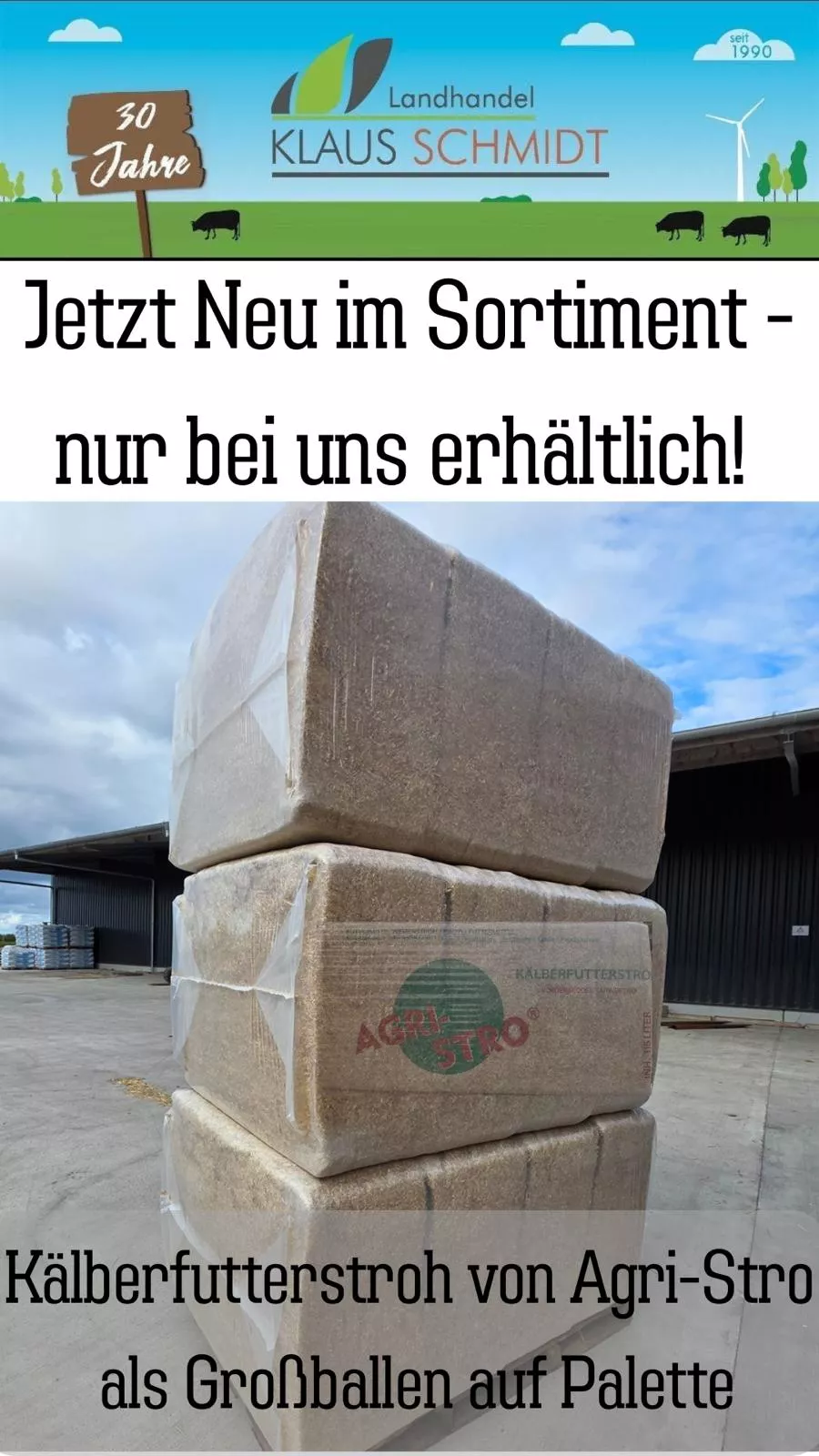 JETZT NEU: Agri-Stro Kälberfutterstroh als Großballen auf Palette!